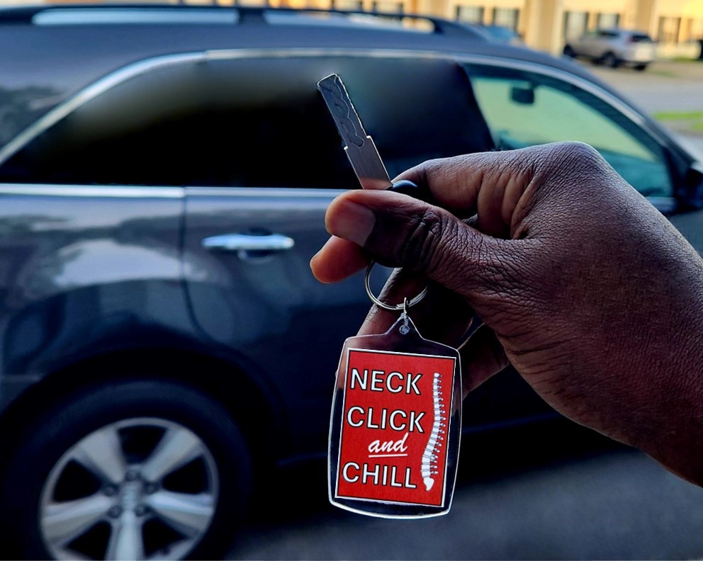 ChiroChainsTM create an instant connection with current and future patients through funny messages like “Neck Click and Chill.”