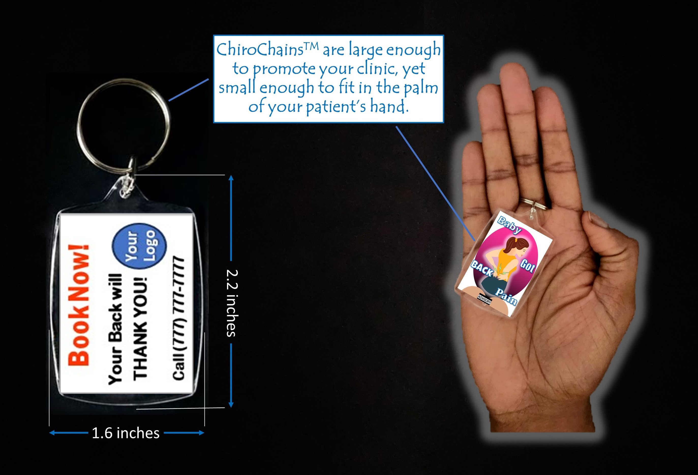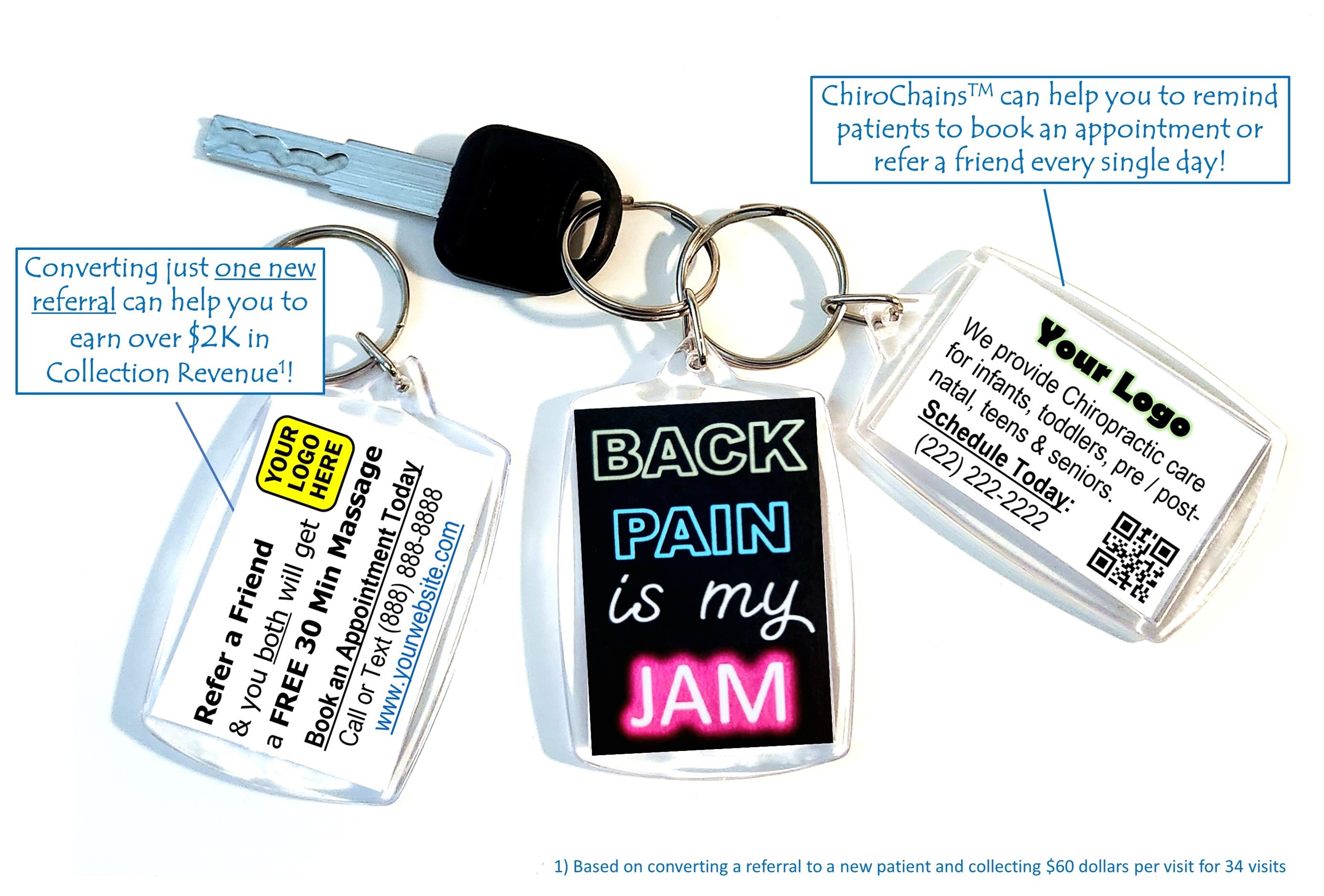 When patients show these keychains to friends and family members, it sparks a conversation about Chiropractic care, which leads to more referrals and new patients for your clinic!